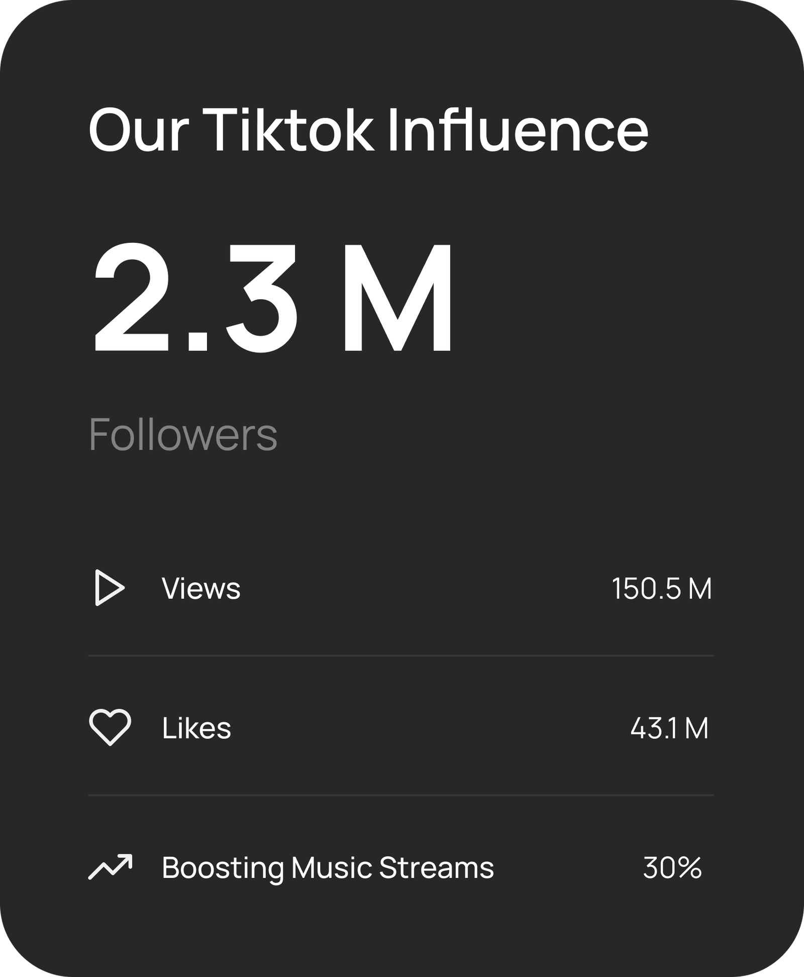 See Our Creators!Our innovative strategies are tailored to boost your artist’s recognition. Contact us to learn more.